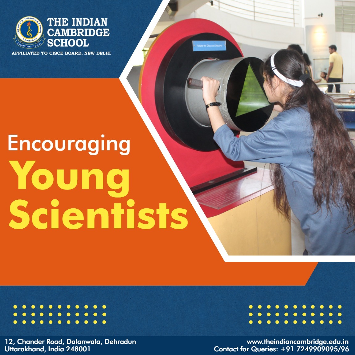 If you are intrigued by the approach to education at Dehradun’s best boarding school, The Indian Cambridge School, and would like to learn more about us, we invite you to reach out to us on +91 724-990-9095. Check out how we are contributing to a holistic educational experience and empowering the daughters of our nation! contactus